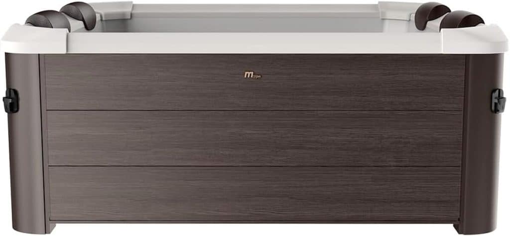 Dès la réception, le spa MSpa Tribeca impose sa présence. Livré dans plusieurs cartons volumineux pour un poids total de 76 kilogrammes, il est clair que la manipulation se fera plus aisément à deux. Une fois les colis ouverts, on découvre un ensemble de panneaux rigides à l’aspect bois composite, le liner en PVC gris anthracite, le bloc technique qui combine la filtration, le chauffage et le système de bulles, ainsi que divers accessoires comme la couverture et le tapis de sol. La première impression est celle d’un produit sérieusement conçu. Les panneaux en plastique rigide, imitant des lattes de bois, sont épais et semblent robustes. Ils constituent la structure externe du spa et lui confèrent une allure bien plus qualitative que celle d’un simple spa gonflable traditionnel. Le liner, en PVC laminé, est également d’une épaisseur rassurante. L’ensemble inspire confiance et s’éloigne de l’image parfois « gadget » des jacuzzis d’entrée de gamme. L’assemblage promet d’être intuitif, un point confirmé par plusieurs retours d’utilisateurs qui évoquent un « montage simple ».